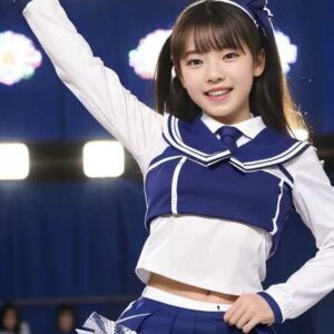 アイドルコスチュームでスカートをたくし上げるJCアイドル